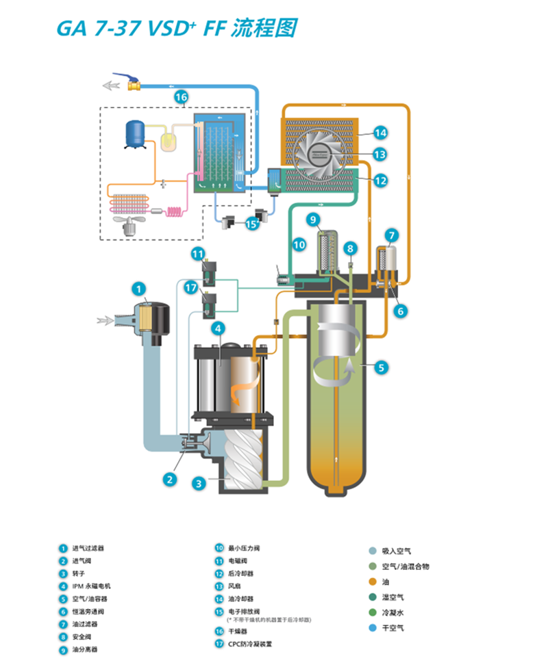 GA FF 全功能機型集成了干燥機和油水分離器,以保護您的壓縮空氣管網(wǎng)。高品質(zhì)空氣可延長設(shè)備的使用壽命、增加效率并確保產(chǎn)品的質(zhì)量