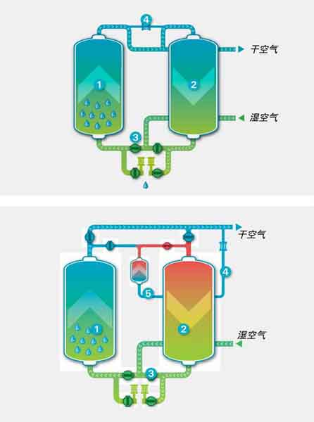 轉鼓干燥機擁有極為出色的能效,而雙塔干燥機則擁有極低的露點