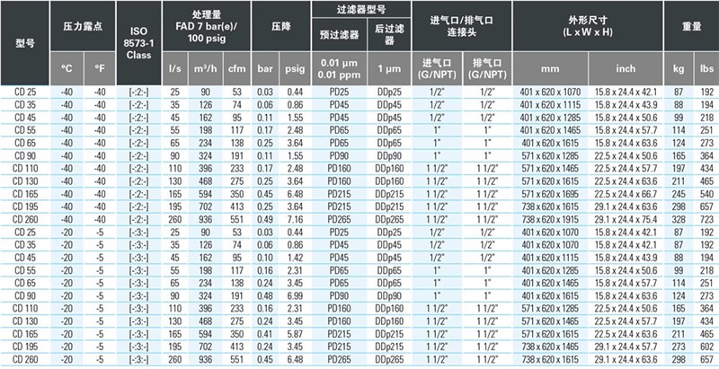完整的雙塔式吸附式空氣干燥機和轉鼓干燥機系列,適合各種工業(yè)應用場合。