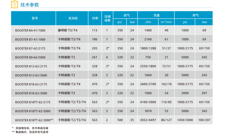 ·標(biāo)準(zhǔn)機(jī)型能夠提供 69~345 bar的高壓空氣,提高您的工作效率